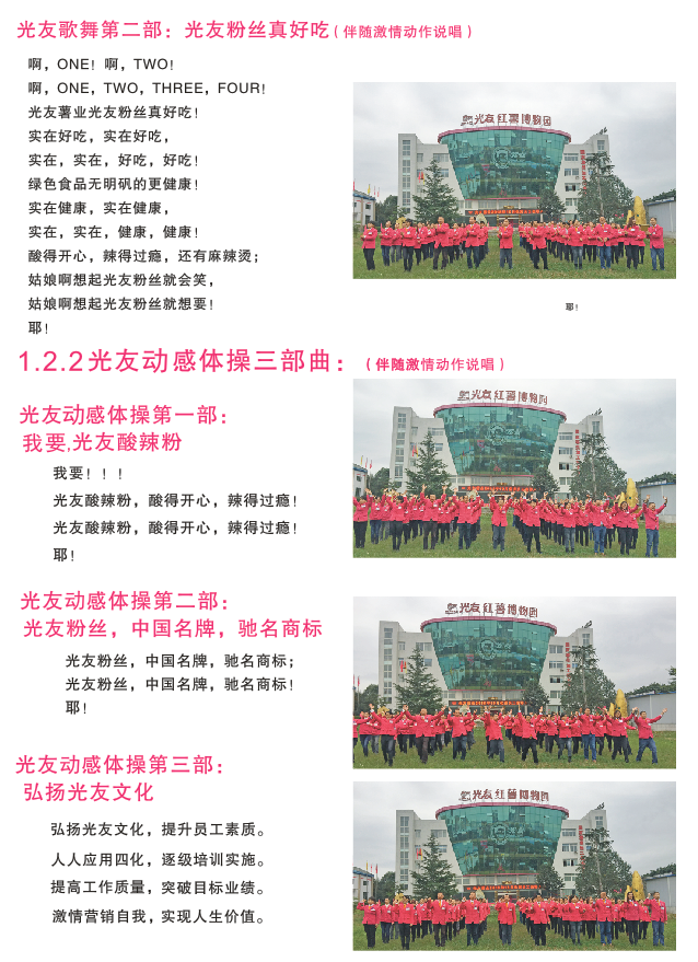 光友薯業(yè)歷來重視企業(yè)文化的發(fā)展和創(chuàng)新,29年來,已形成獨具特色、富有激情、 富有正能量的企業(yè)文化,光友文化是光友薯業(yè)的靈魂,是光友人共有的價值觀和行為準(zhǔn)則,對員工無時不產(chǎn)生指導(dǎo)、熏陶、感染、規(guī)范的潛移默化作用,是形成團隊凝聚力的原動力,引導(dǎo)員工積極進(jìn)取,快樂生活、快樂工作、走向成功。