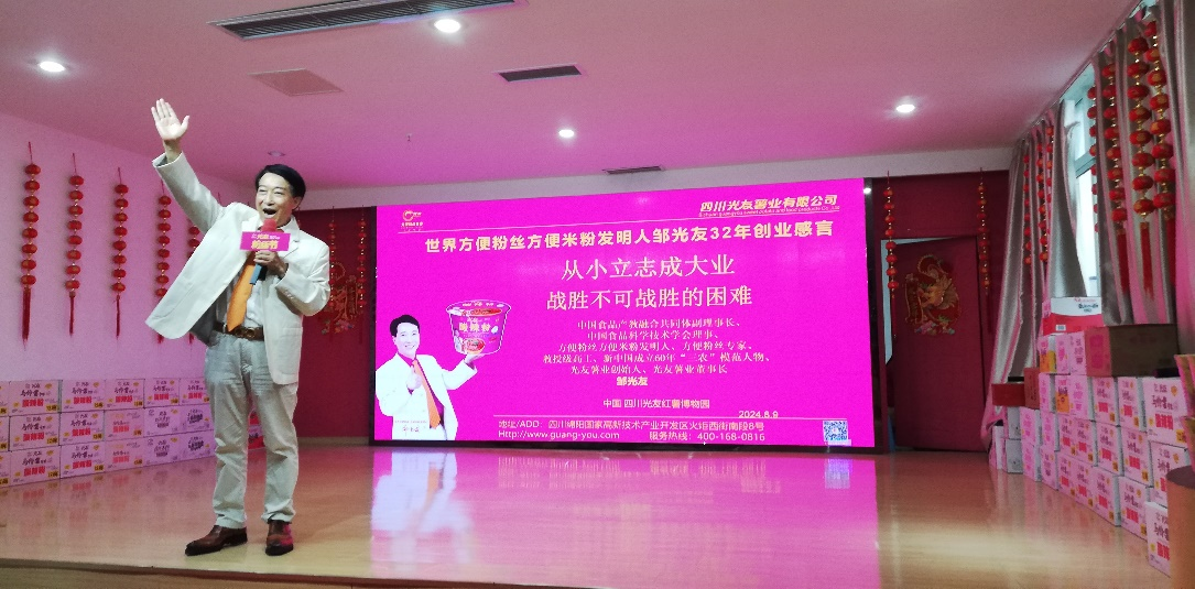 活動(dòng)前預(yù)熱環(huán)節(jié),一段活力四射的光友粉絲舞視頻讓現(xiàn)場(chǎng)氣氛瞬間升溫。隨后,方便粉絲方便米粉發(fā)明人、光友薯業(yè)集團(tuán)董事長(zhǎng)鄒光友發(fā)表熱情洋溢的歡迎辭,并深情分享《從小立志成大業(yè) 戰(zhàn)勝不可戰(zhàn)勝的困難》的感言,鼓勵(lì)小記者們勇于面對(duì)挑戰(zhàn)面對(duì)困難,追求夢(mèng)想。在互動(dòng)環(huán)節(jié),小記者們積極提問,鄒董事長(zhǎng)一一耐心解答,并親手為提問的小記者們贈(zèng)送《光友詩(shī)選》,每本書上都附有鄒董事長(zhǎng)親筆簽名及溫馨寄語(yǔ),傳遞著對(duì)下一代的殷切期望。