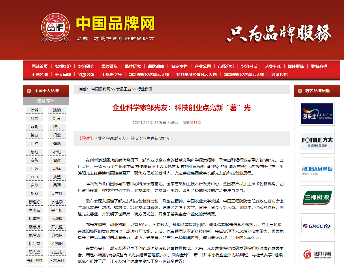 轉(zhuǎn)載中國品牌網(wǎng)——企業(yè)科學(xué)家鄒光友:科技創(chuàng)業(yè)點亮新“薯”光