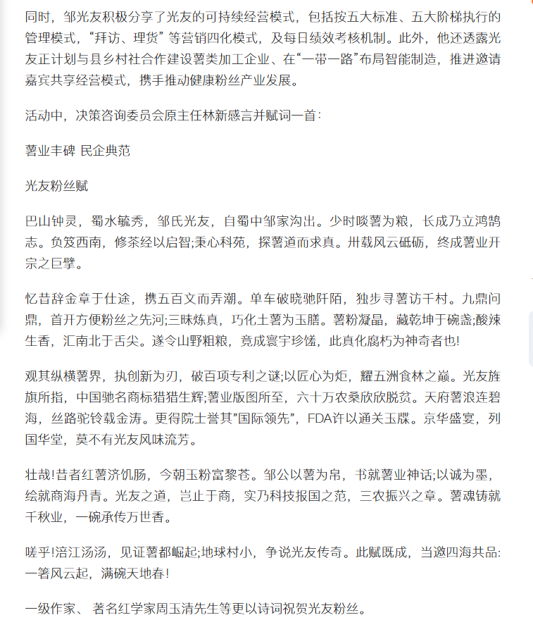 第三屆粉絲論壇 健康粉絲峰會在中國光友紅薯博物園召開