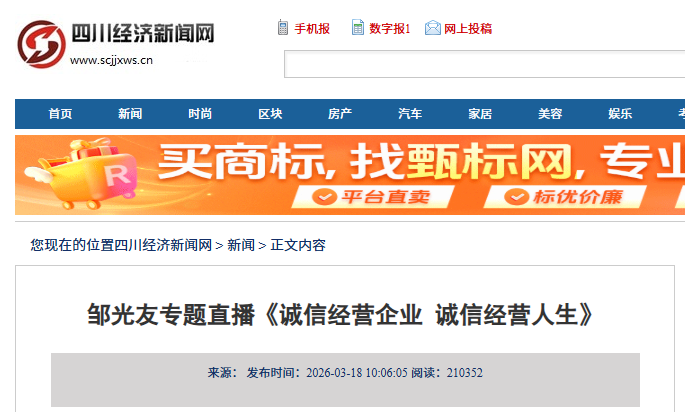 轉(zhuǎn)載四川經(jīng)濟(jì)新聞網(wǎng) 鄒光友專題直播《誠信經(jīng)營企業(yè) 誠信經(jīng)營人生》